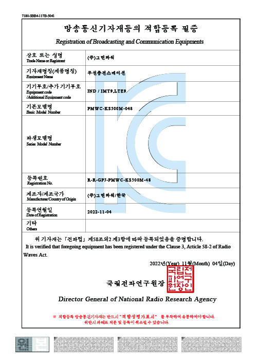 | 외부 통신 | LoRa, RS-485 | ||